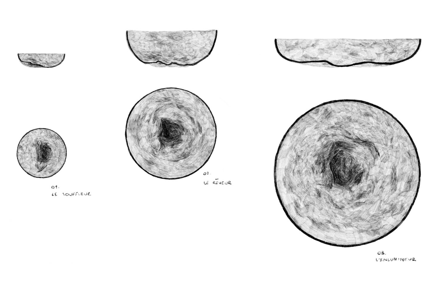 J’ai travaillé sur le bol, comme un pur contenant, originel et primitif, qui reconnecte aux éléments qui nous entourent, et qui contiennent des sons, de l’air, de l’eau, de la lumière.