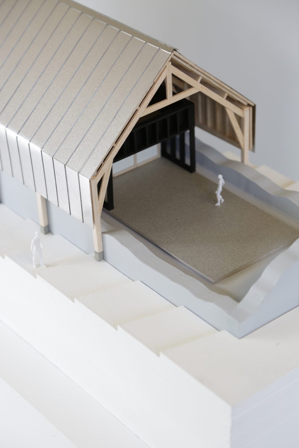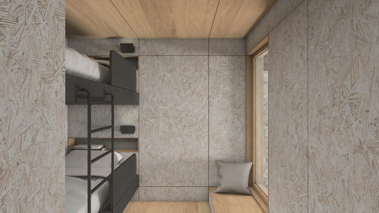Cette nouvelle intervention est plus poreuse que la précédente, la nécessité içi est de laisser un espace dégagé afin que les visiteurs puissent contempler le paysage. Le volume hébergeant vient se dissocier de la toiture, qui elle agira comme une couverture protégeant l’intervention et les randonneurs des intempéries.