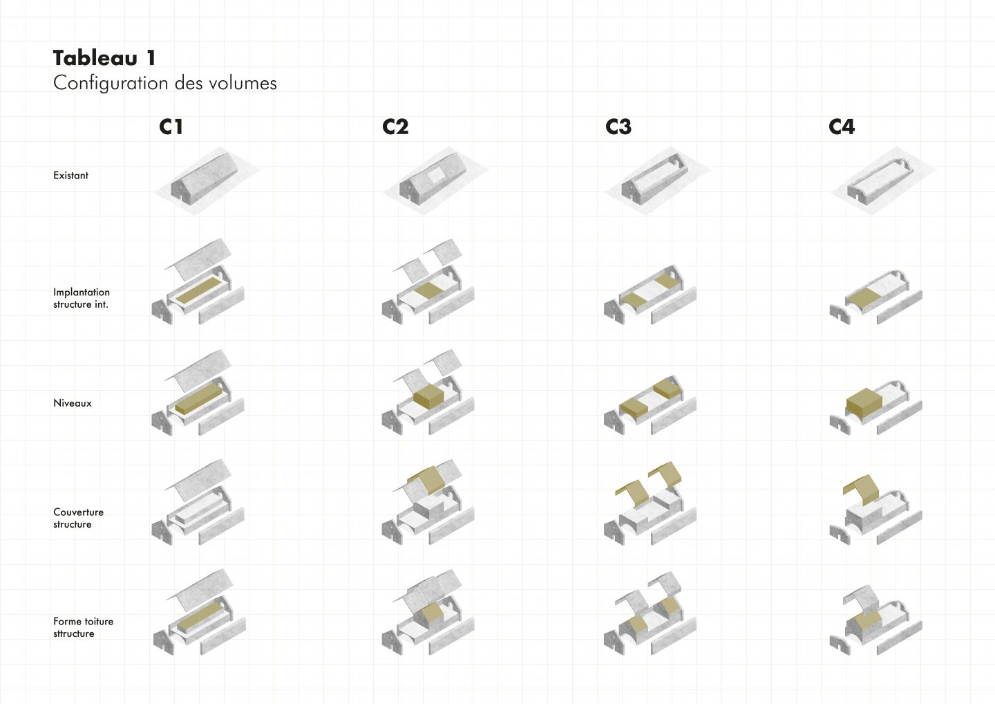 Le projet fait apparaître une symbiose intervenant entre deux éléments: un existant venant être protégé par une nouvelle intervention, et des structures venant se nourrir de l’existant, de l’histoire du bâtiment et de toutes ses failles sur laquelle elles s’implantent pour exister.