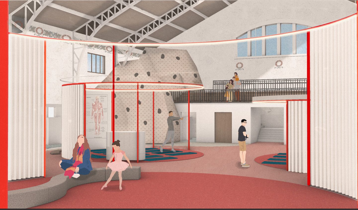 L'expression "faire corps" c'est avant tout ne faire qu'un avec, s'unir et être solidaire. Le projet s'articule autour de la rencontre du gymnase Léopold Bellan à Bry-sur-Marne, et une volonté de créer un espace où psychique et physique se lient. Un gymnase est un lieu de rencontre mais aussi d'apprentissage du sport. Modularité, fluidité et jeux de point de vue sont au service de cette volonté de transmission s'illustrant par une réelle expérience sensorielle. La vue, l'écoute et la pratique permettent une sensibilisation et la prise de conscience de son corps.Le projet prend vie au coeur du bâtiment et se déploie jusqu'à l'extérieur. Le nouveau centre Bellan à travers une initiation intime et personnel, devient un lieu de rencontres entre plaisir du sport et bien être