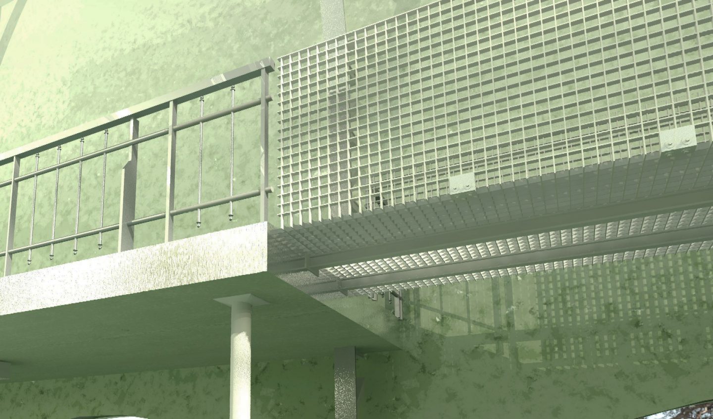 La mezzanine du bâtiment existant est conservée et protégée, des passerelles légères sont ajoutées pour compléter afin de créer des espaces solarium. On peut également accéder à une cafétéria à un étage supérieur.