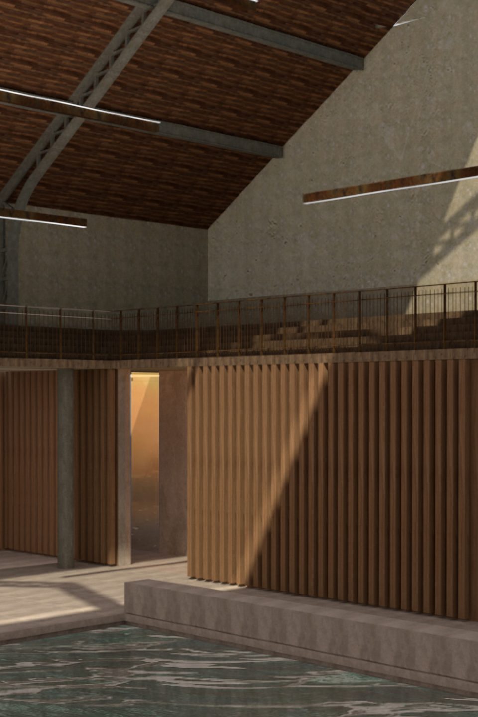L’intention du projet porte sur de nouvelles exigences, les nouvelles envies desclients. La piscine doit continuer à être un lieu d’apprentissage mais elle doit savoir seconjuguer avec le bien-être, le calme. L’enjeu a été de lier ces deux fonctionnalités au seinmême d’un seul espace, par l’intermédiaire de l’architecture, d’une atmosphère et d’un rythmedonner à l’environnement. L’acte de construire doit répondre à notre besoin de définir nos espaces, sans quoi l’expérience et l’éducation ne sont pas possibles. La piscine Léopold Bellan n’est pasune piscine municipale à proprement parler, il s’agit plutôt d’une piscine orientée vers la pratique de la natation et la détente.