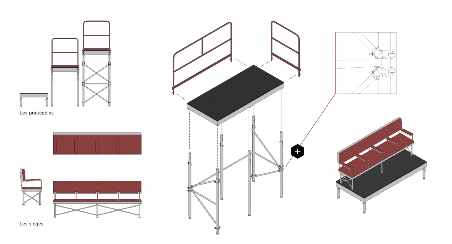 – Une machine scénique rendant visible l’aspect technique du théâtre.