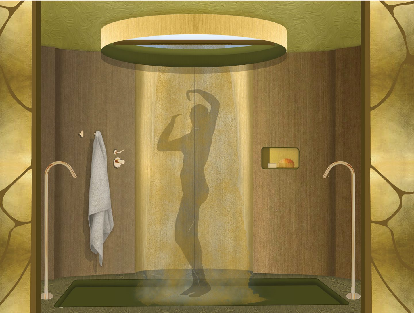« Ces différentes figures féminines apparaissent dans l’intérieur et les extérieurs de ce bateau, comme des personnifications, présentes par les couleurs créant des ambiances, elles ne sont en aucun cas visibles mais deviennent des présences qui accompagnent les passagers tout au long de leur traversée. »