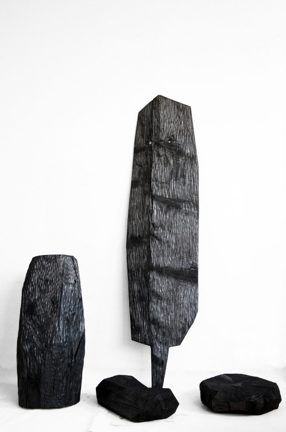 C’est en arpentant ces collines de terres de cendres, ces vestiges d’arbres noirs, brulés et aux formes abstraites que le projet est né formellement et matériellement.